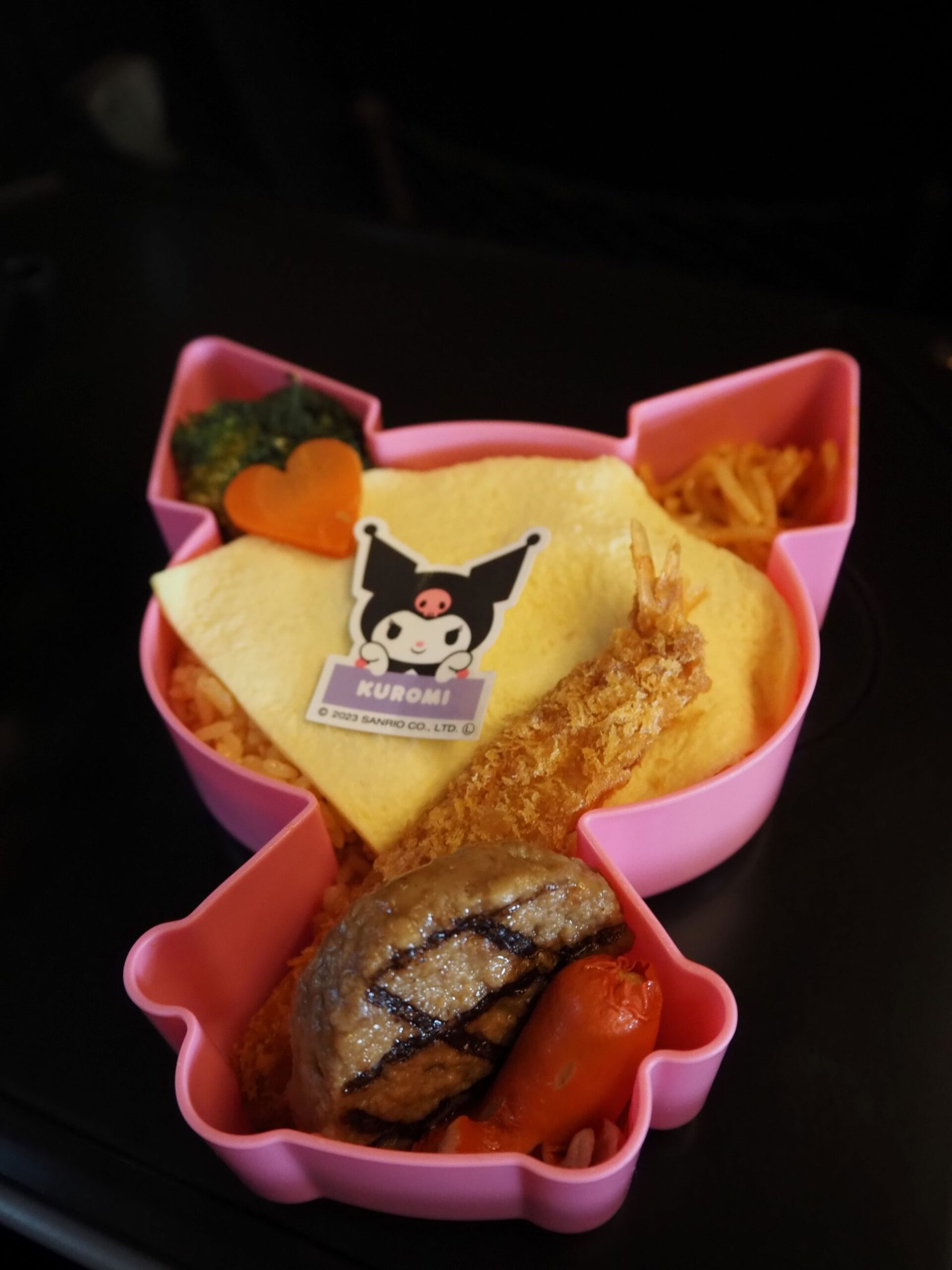 - On the road again! Checked out in Osaka, walked and got a train to the shinkansen station, grabbed an ekiben for the trip. Kuromi charabento, of course!