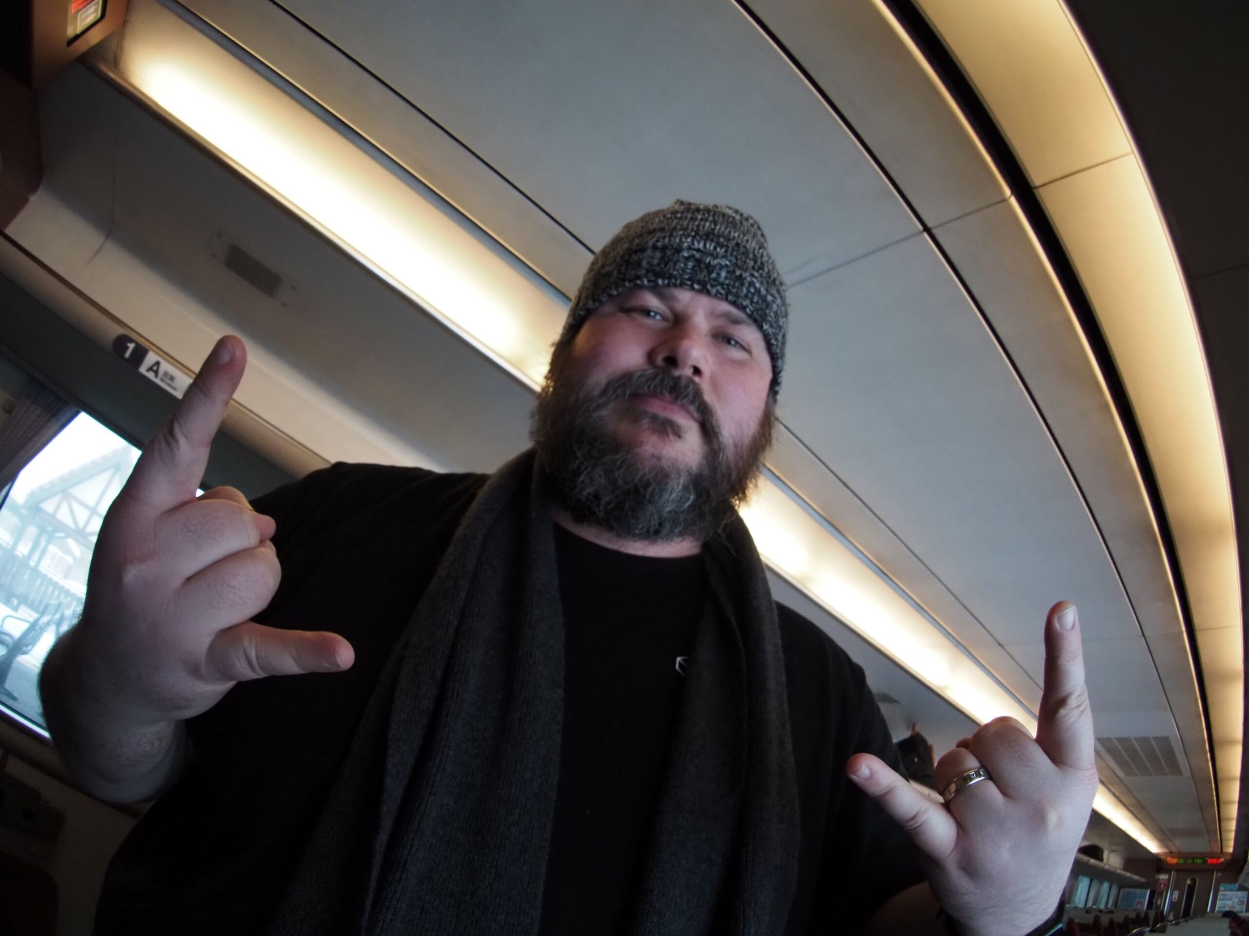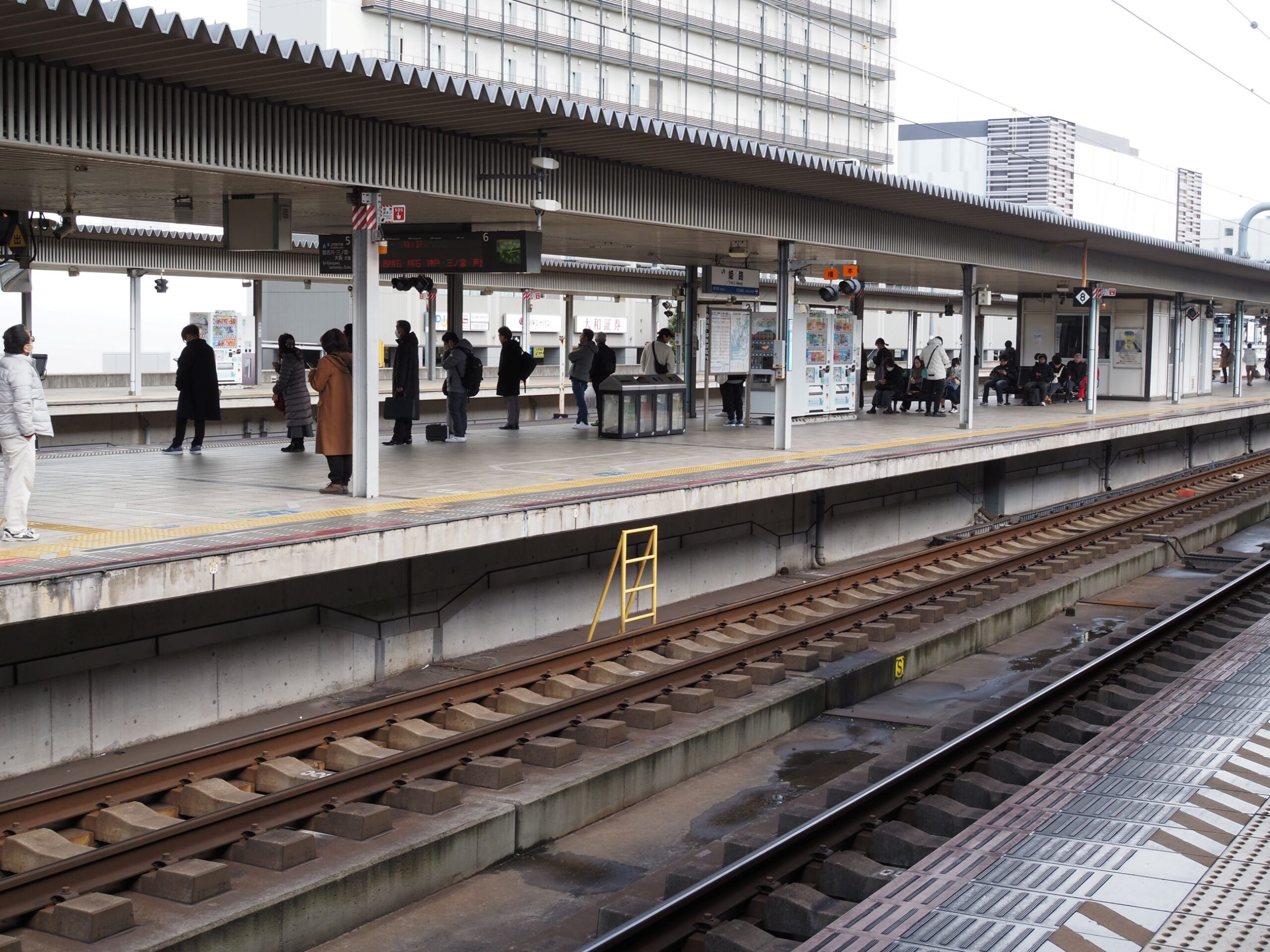 - After walking back to the station and collecting our luggage (and trying to get a bus back, being unable to work out which bus stop we needed, and nearly getting on a bus heading in the wrong direction), we transferred at another station and waited for our high speed (but not shinkansen, I believe?) train to our final destination for the day – Kinosaki Onsen Town.