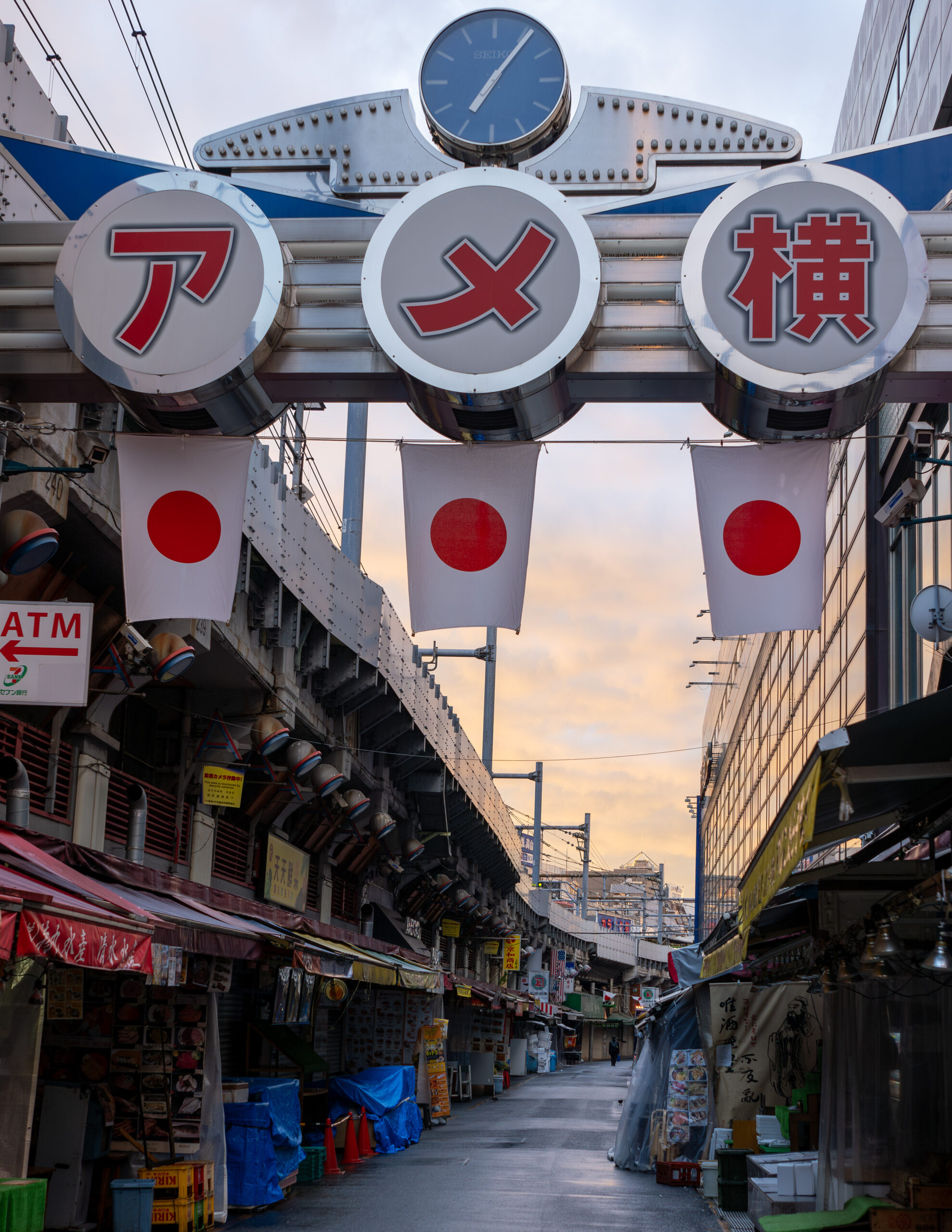 Woke up pre-dawn on the 7th, feeling healthy (thankfully, was worried that getting drenched and immediately going to bed the previous night might have been a mistake) and ready to go out! Leaving MBW to have a little more sleep, I went out on my first solo photo walk of the trip. Weapon of choice was my go-to main camera, the OM System OM-1, which is my preferred do everything option. In the early pre-sunrise hours, my (relatively) new 50mm f/1.2 PRO lens did the bulk of the work, although the 7-17mm 2/2.8 PRO, 40-150mm f/2.8 PRO and 8mm f/1.8 fisheye PRO lenses also came for the stroll around Ameyoko. (as with most photos, please click for a la
