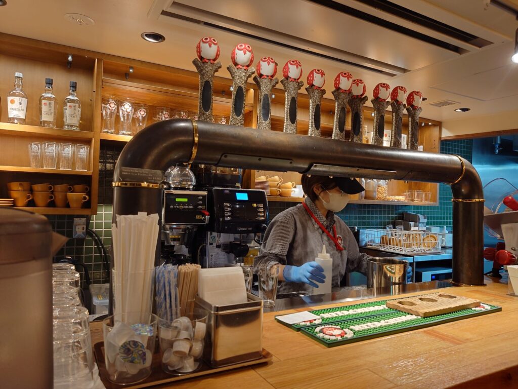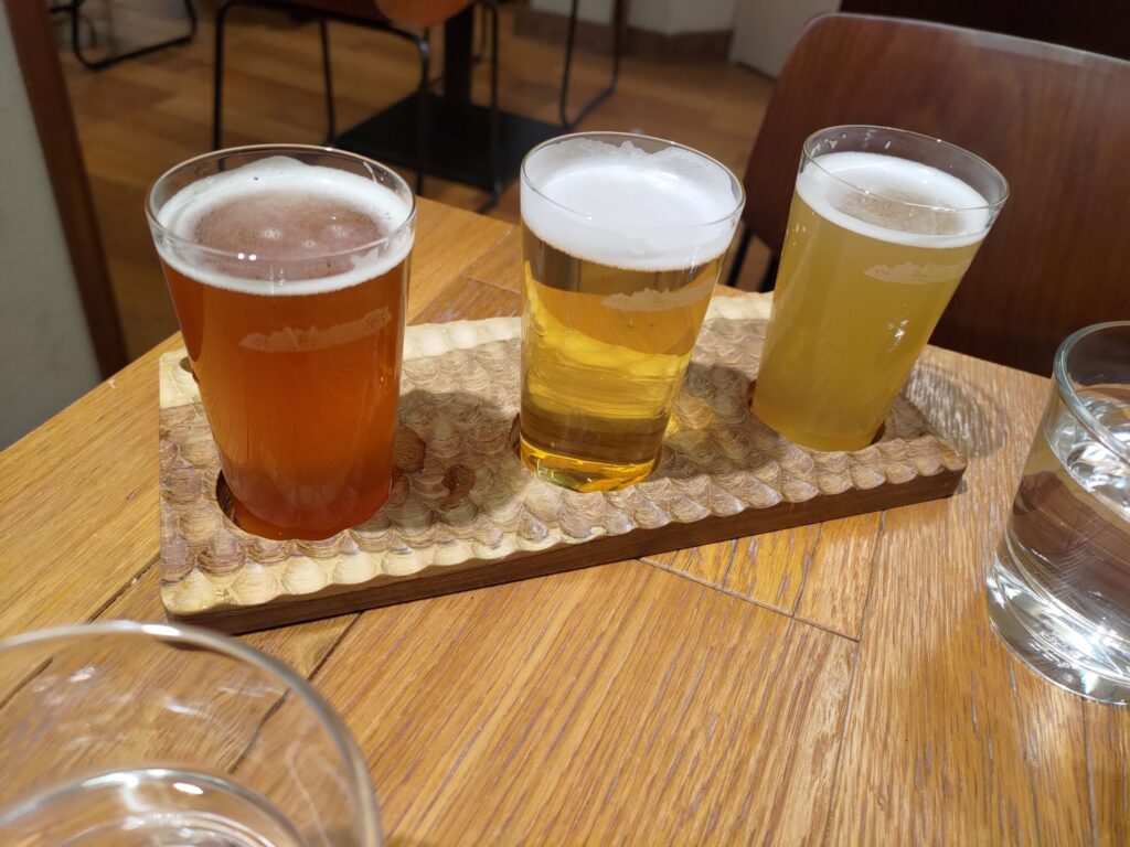- We found a little store run by a craft brewer in the station itself, where Mel had a very nice boutique umeshu (plum wine) and I had a float of their signature beers to try.