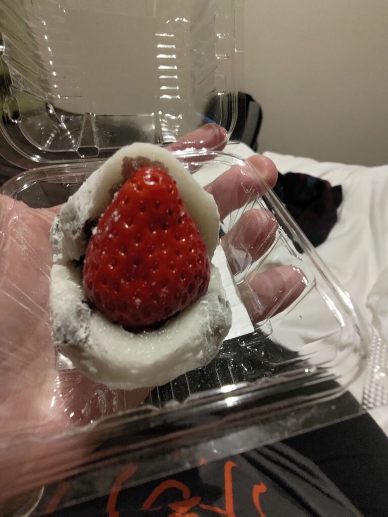 - Found a little stall selling very tasty strawberry daifuku.
